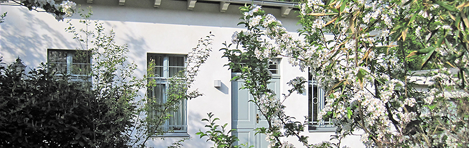 Baumaßnahmen: Instandsetzung einer einsturzgefährdeten Immobilie, Umbau, energetische Sanierung und Modernisierung, Innenausbau (Möblierung) und Gartenneugestaltung